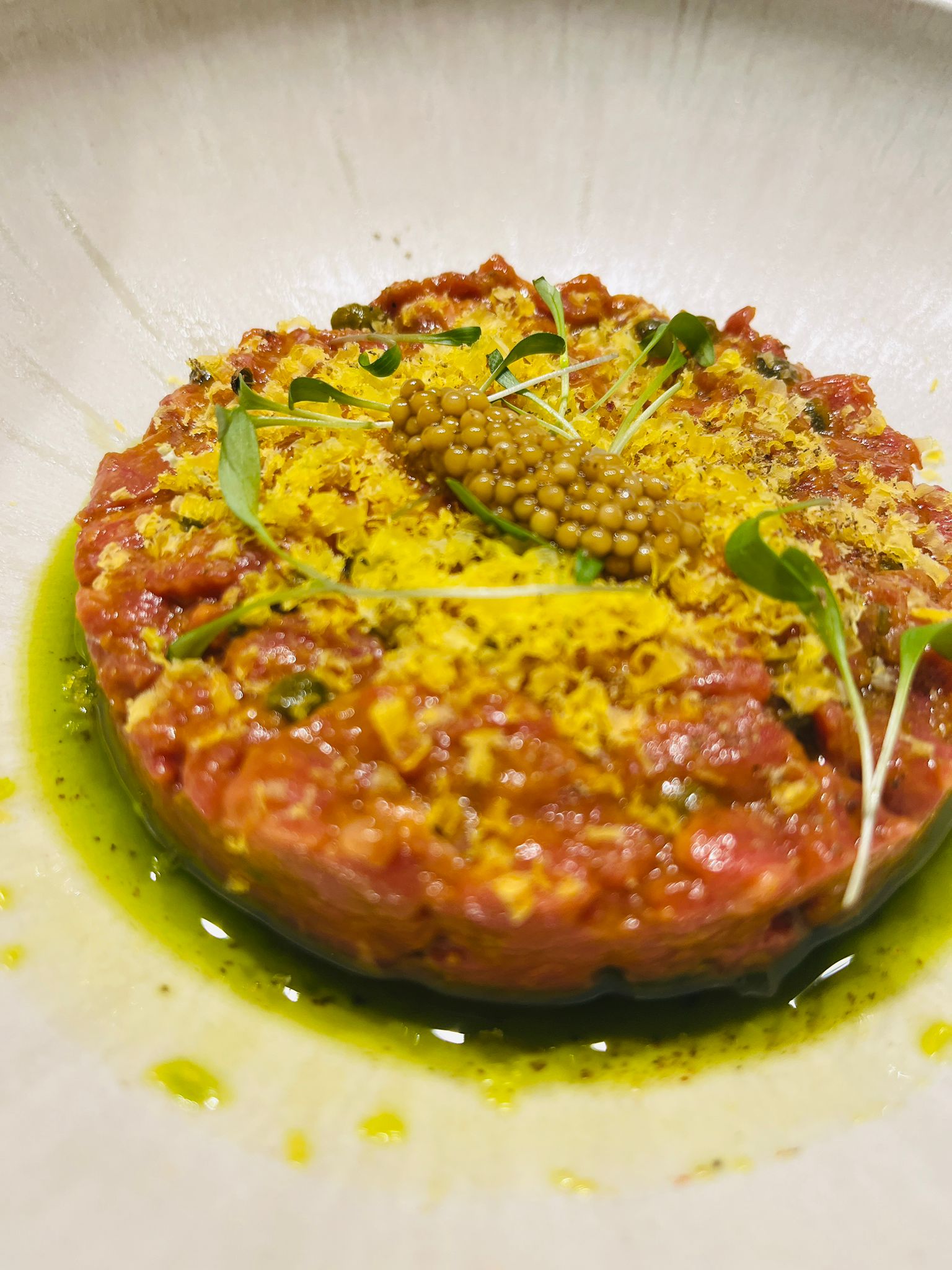 Beef Tatar - confiertes Eigelb - fermentierter Pfeffer